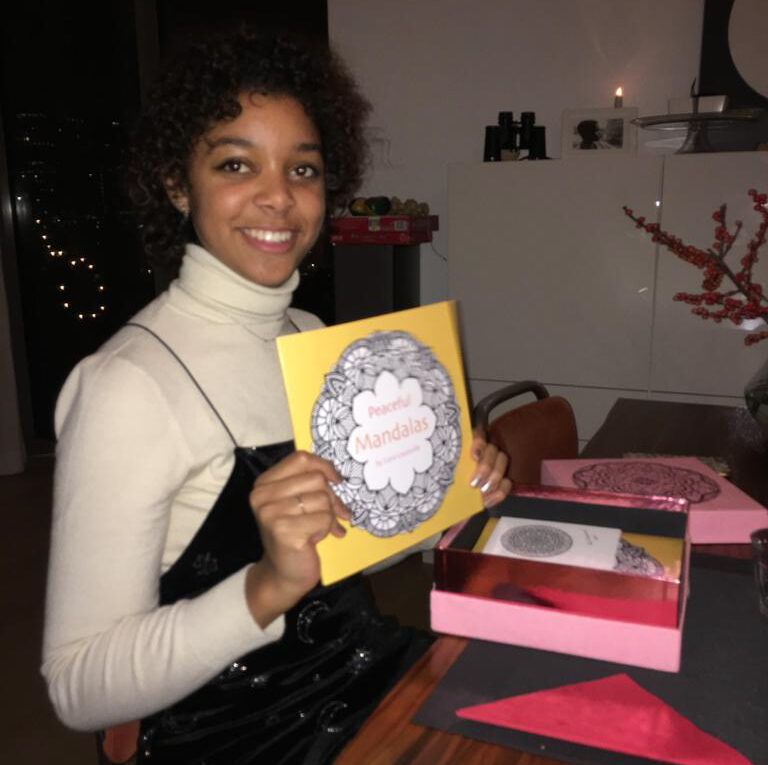 Ingekleurde mandalas en reacties Fenne Yashodara Superleuke reactie op het boek! Lola Moses en zijn zusje Ina is blij verrast met haar kerstcadeau Joy Laila Cordelia Julia Liz – inclusief de prachtige doordruk aan de achterkant 🙂 Aan het kleuren Wolf Siebe en Yfke Luca met haar eerste boek HOME | Mandala kleurboekenMandala kleurboek 2020Mandala kleurboek bestellenMandala kleurboek 2022 | voor kidsAboutIngekleurde mandalas en reactiesContact